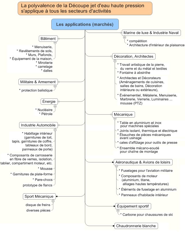 Liste des secteurs d'activités en application de la technologie de découpe jet d'eau